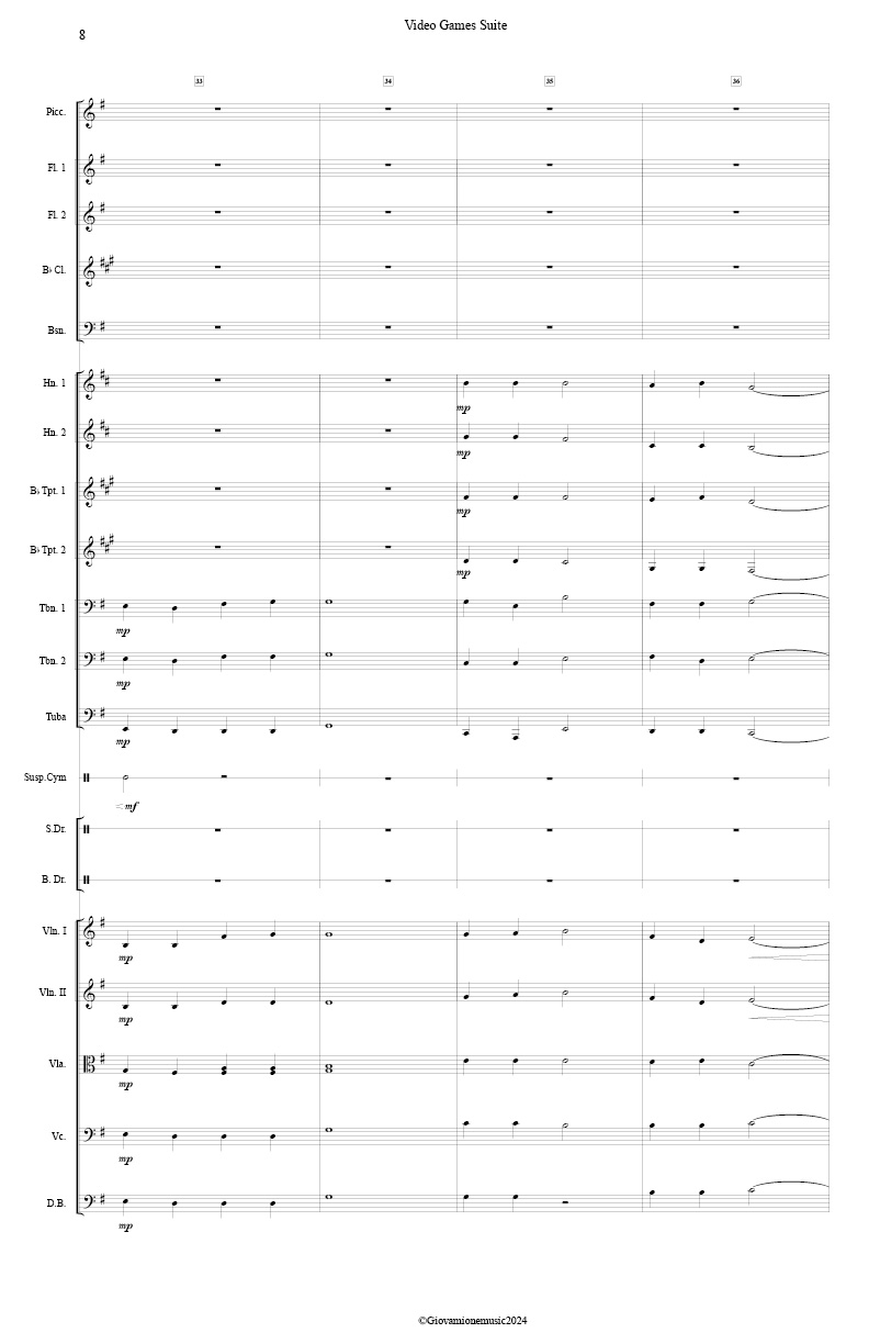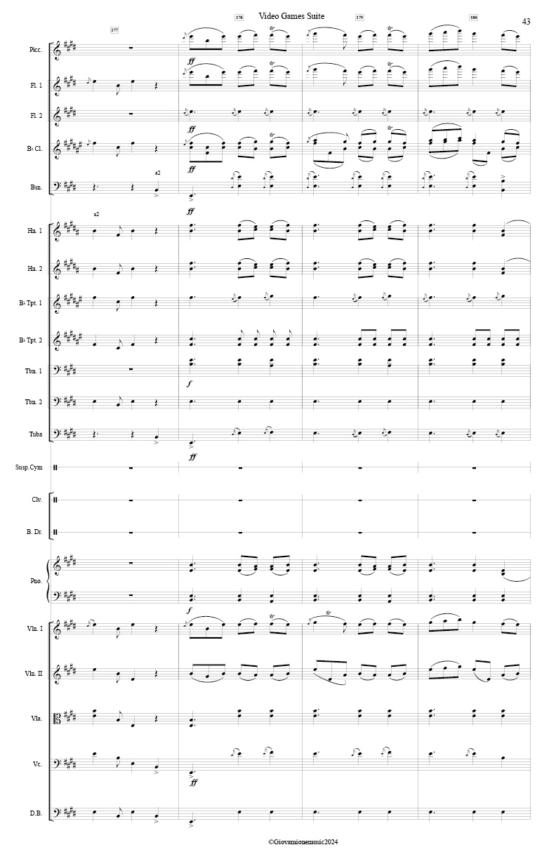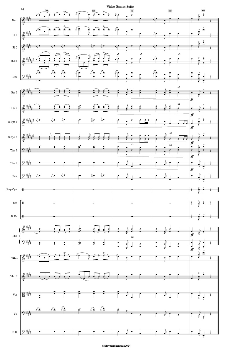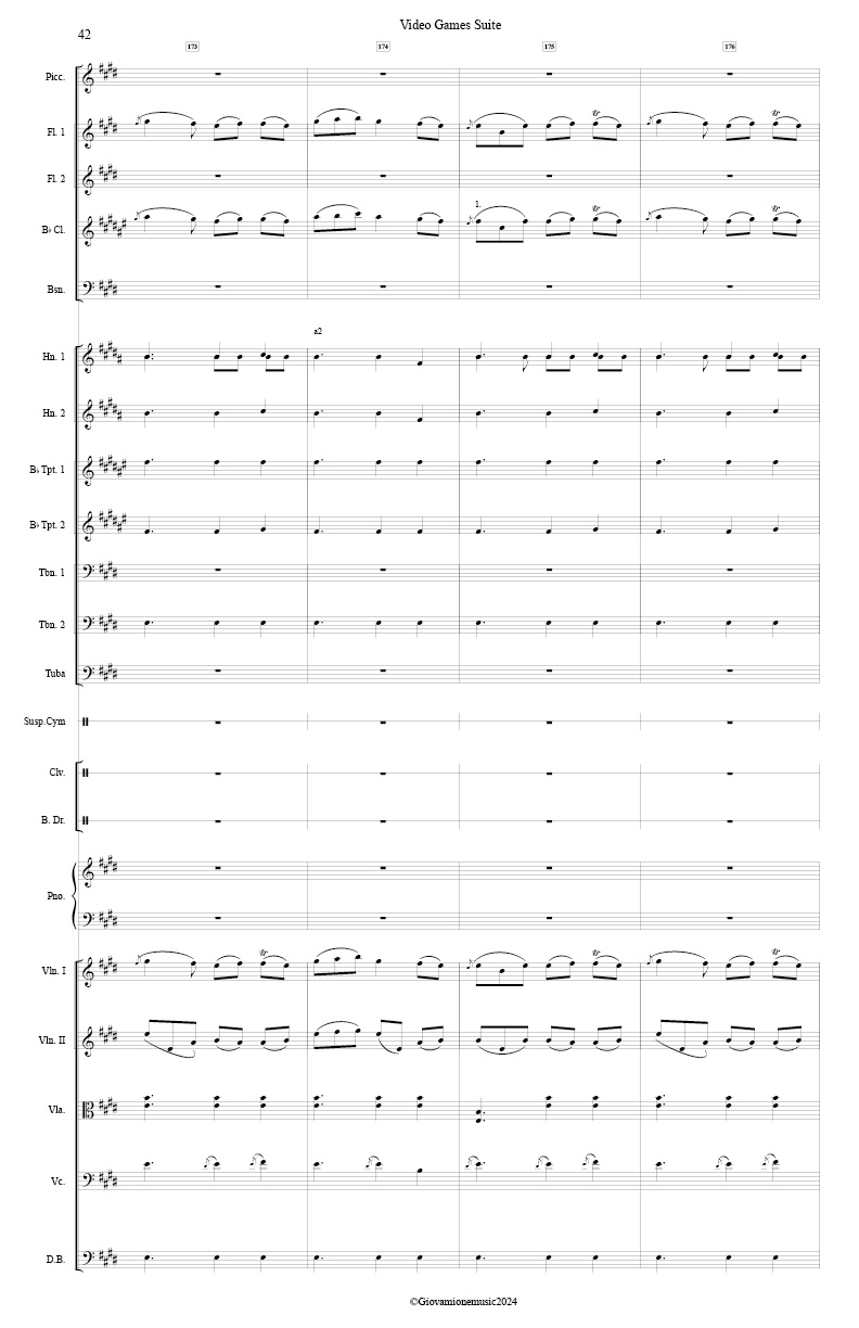 · Winds: 1 piccolo, 4 flutes, 4 oboes, 4 Bb clarinets, 4 bassoons